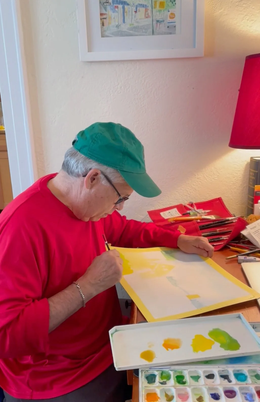 Nearly all paintings are watercolors on hot press Arches block paper ranging from 8 X 10 to 16 X 20 inches. I use Schimnke paints primarily. I started painting as a therapy about 9 years ago having no prior experience or training. The up and down results reflect that.
